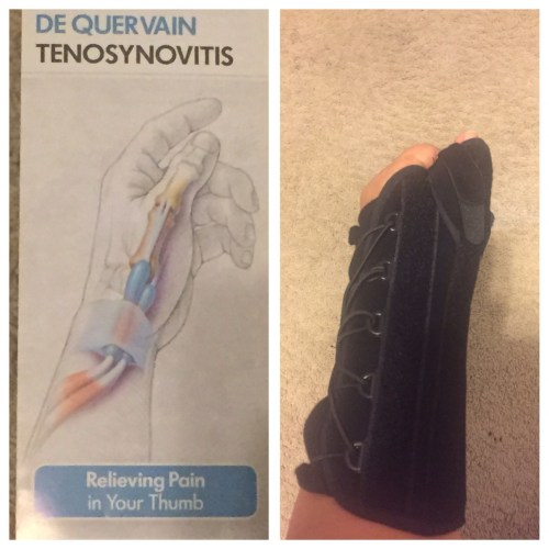 De Quervain Tenosynovitis , well that is a mouth full! I had my appointment with the Orthopedist on Monday and that is what is causing all my pain! I received a cortisone shot in the joint space and my wrist/thumb was placed in this lovely immobilizer. I am to wear this contraption for six weeks preventing movement of wrist and use of thumb. IF after the six week period condition is not improved, surgery will be an option! Hummmm, the challenge for me will be resting it……six weeks…..really?